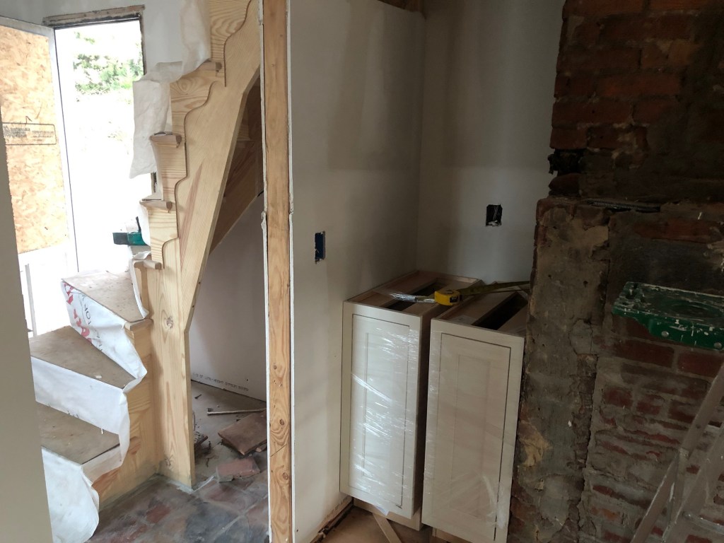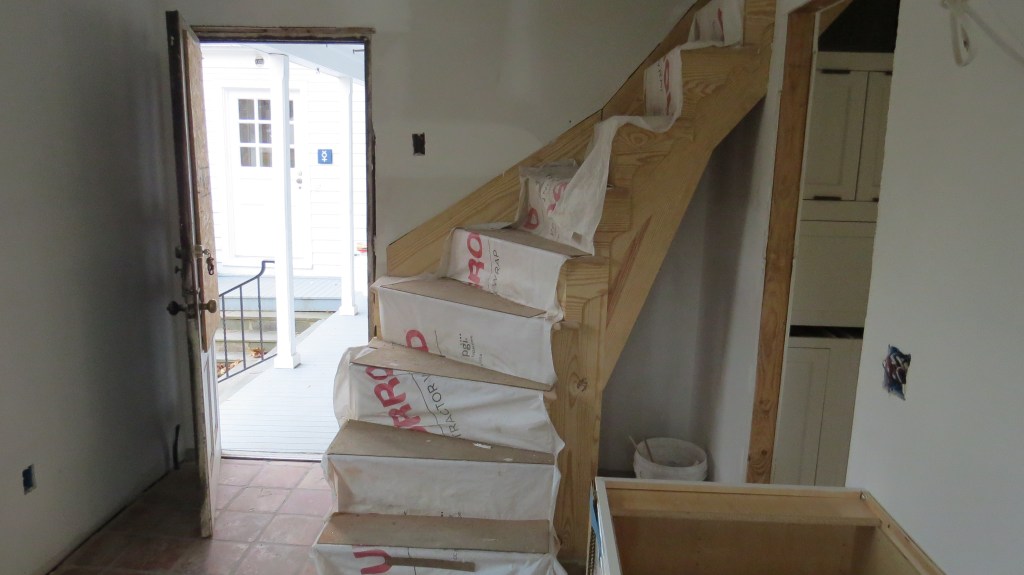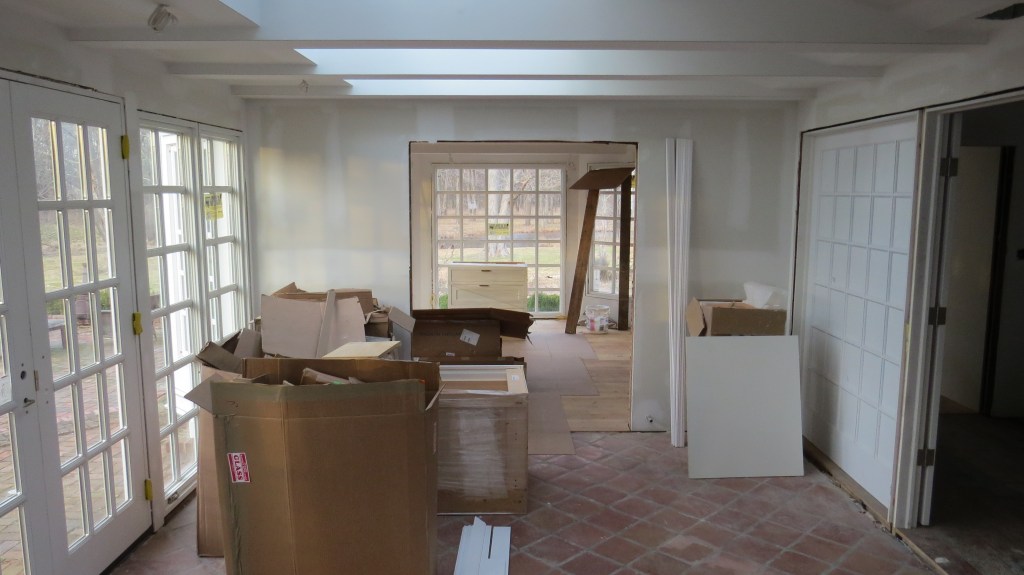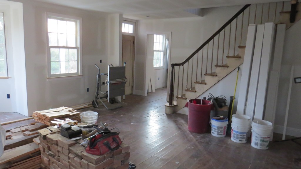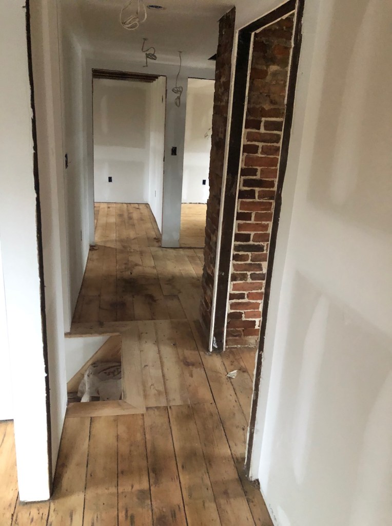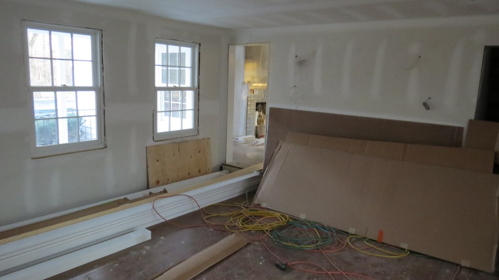 Cabinets and hardwood and walls, oh my! Lots of things going on all at once. The heat will be back on soon and we’ll be rushing to the finish…